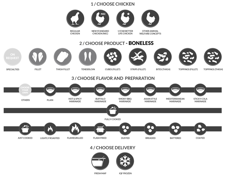 Een vernieuwend assortiment kipproducten met een unieke receptuur, direct klaar om te bedienen. Koken wordt met deze malse en smaakvolle kipproducten makkelijker én leuker!